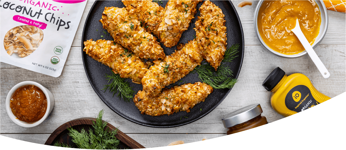 Coconut Crusted Chicken Tenders with Apricot-Mustard